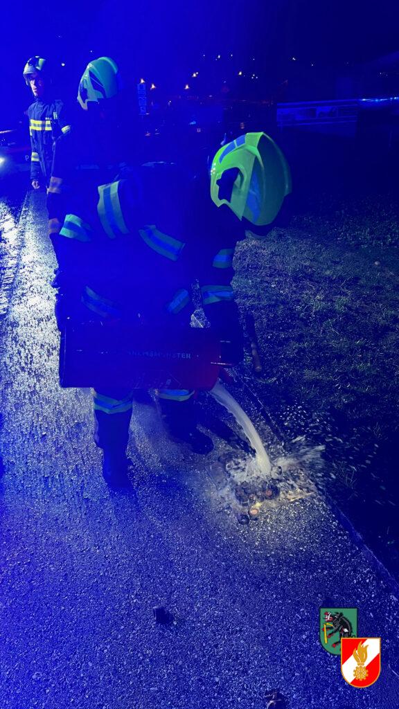 Um 01:27 Uhr wurden wir zu einem Brand einer Feuerwerksbatterie in die Hofwiese alarmiert. Unbekannte hatten eine Feuerwerksbatterie in der Wiese neben der Apotheke gezündet und stehen gelassen. Eine Fußgeherin bemerkte den Brand und alarmierte uns. Der Brand konnte rasch mit der Kübelspritze gelöscht werden.