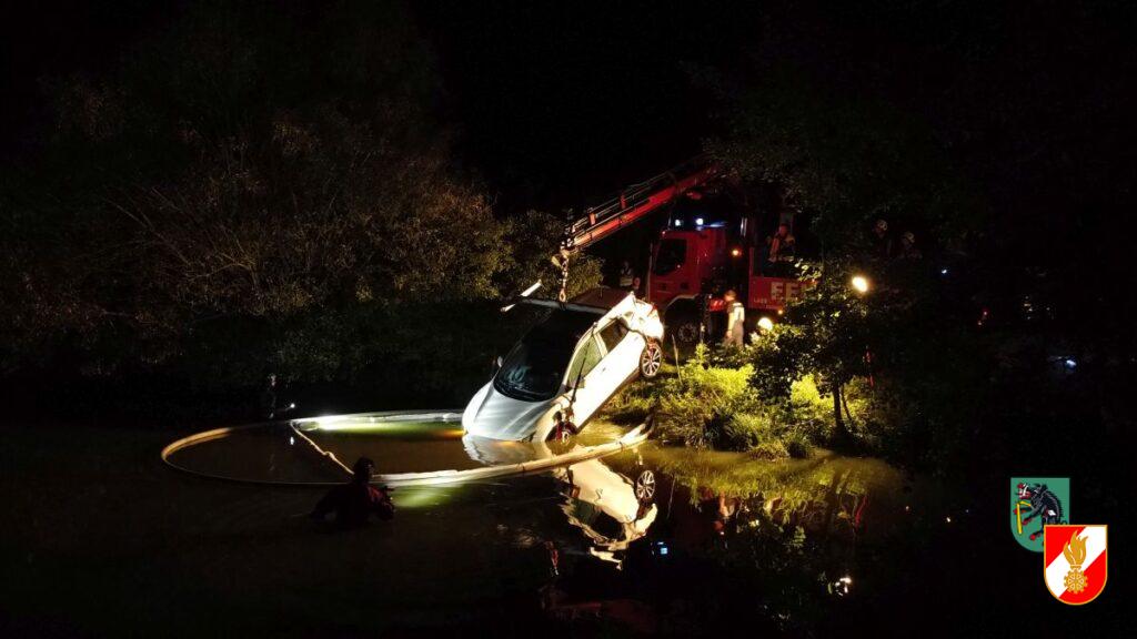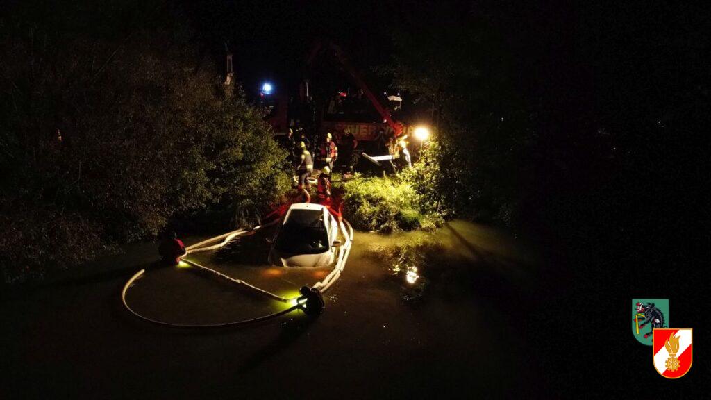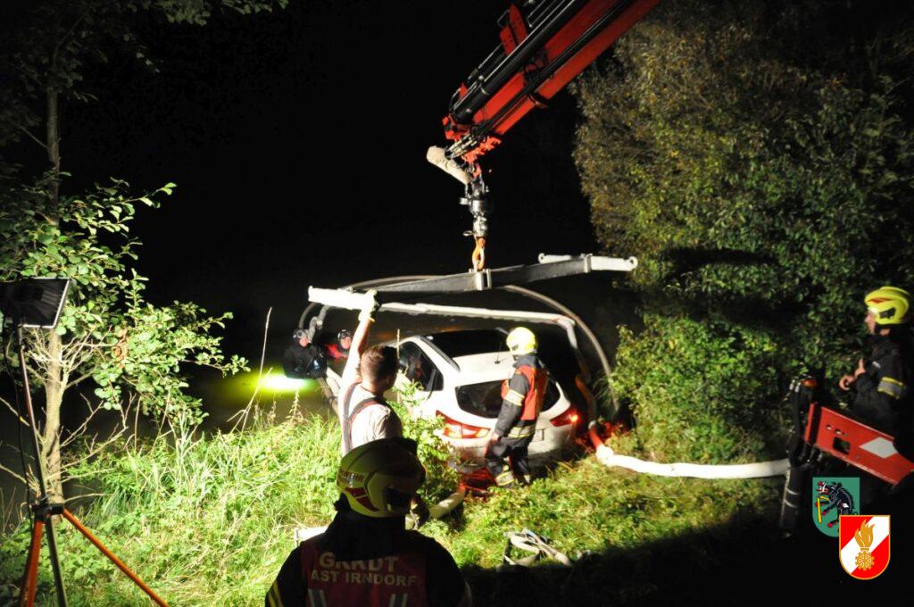 Am 1. September 2023 wurde die Feuerwehr Irndorf um 21:46 Uhr zu Aufräumarbeiten nach einem Verkehrsunfall alarmiert. Beim Eintreffen des Rüstlöschfahrzeugs an der Unfallstelle wurde ein Fahrzeug im Schacherteich vorgefunden. Der Lenker konnte sich noch selbst befreien und wurde bereits von Ersthelfern betreut. Seitens der Feuerwehr wurde die Einsatzstelle abgesichert und ein Lotsendienst eingerichtet. Um einen Schaden für die Umwelt zu verhindern wurde um das Fahrzeug eine Ölsperre aufgebaut. Zur Bergung des PKWs wurde das LAST-Fahrzeug mit Kran und zwei Taucher mit Trockenanzug der Feuerwehr Kremsmünster nachalarmiert. Das Fahrzeug wurde mit dem Kran aus dem Teich gehoben und gesichert abgestellt. Nach rund eineinhalb Stunden konnte die Einsatzbereitschaft wieder hergestellt werden.
