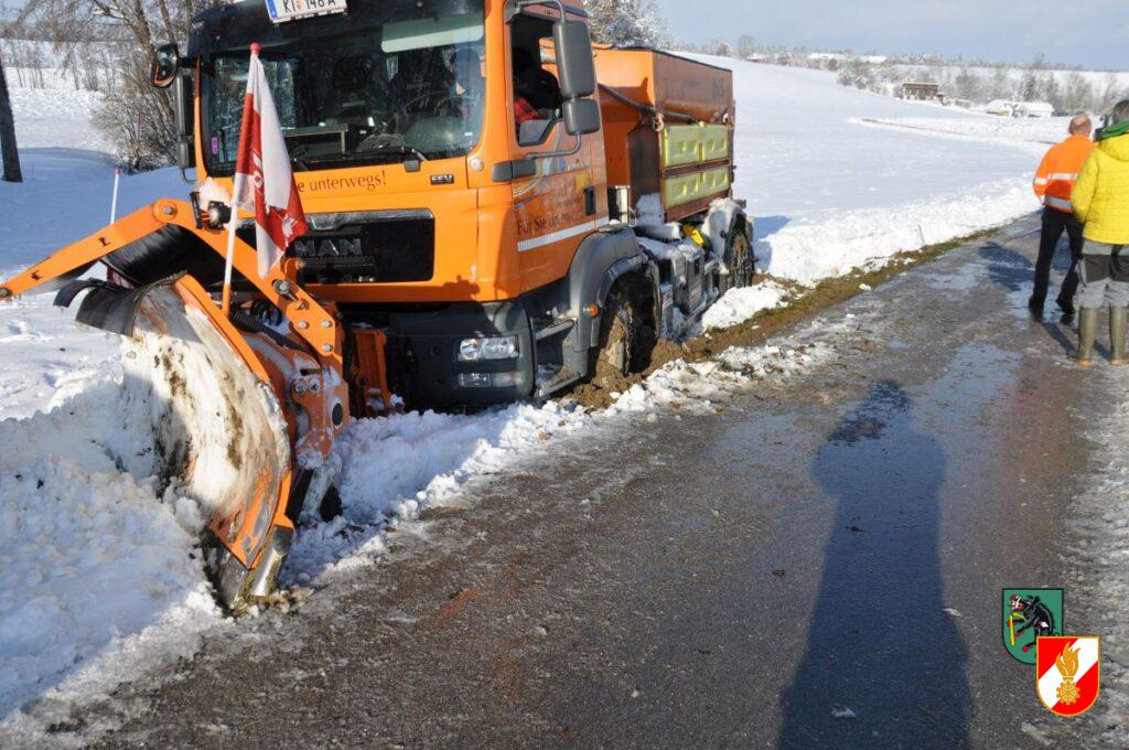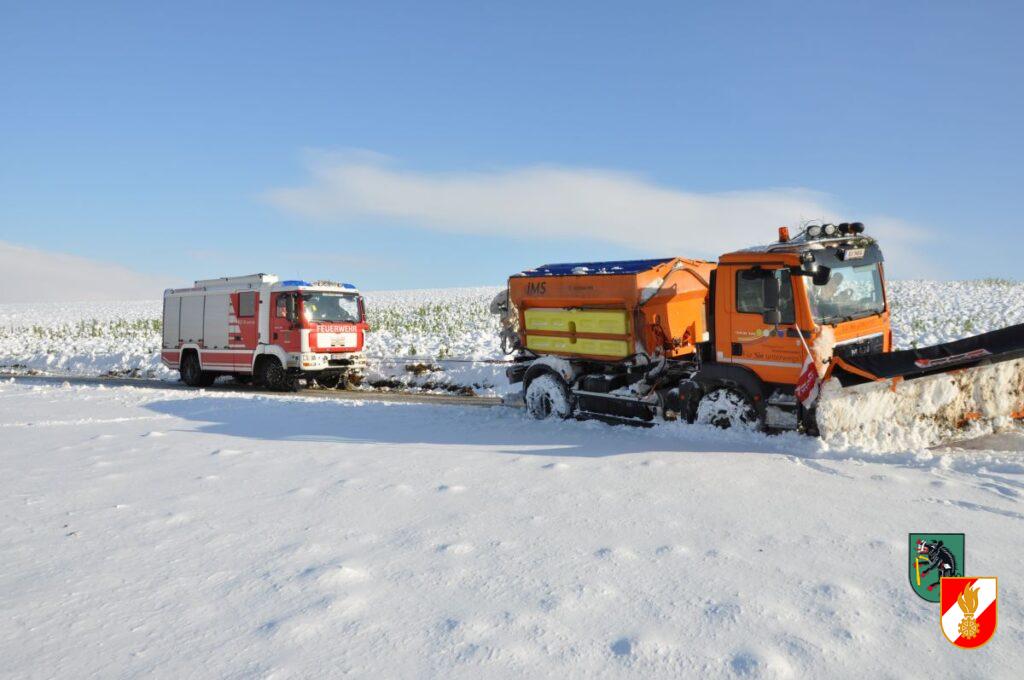 Der dritte Einsatz am 3.12 für die Feuerwehr Irndorf. Ein Schneepflug ist von der Fahrbahn abgekommen und konnte seine Fahrt nicht mehr fortführen. Mit der Seilwinde des RLF konnten wir den Schneeflug herausziehen und er konnte wieder weiterfahren.