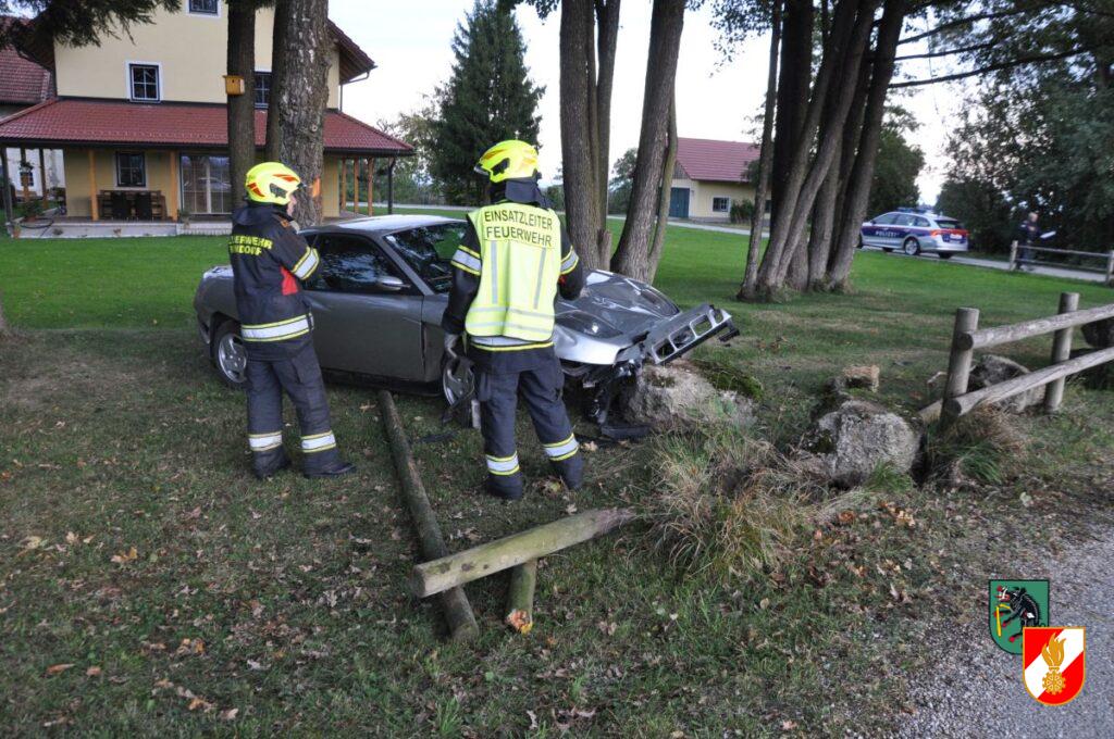 Am 4. Oktober 2023 um 7:04 Uhr wurde die Feuerwehr Irndorf zu einer Fahrzeugbergung im Ortsteil Pochendorf alarmiert. Ein PKW ist aus unbekannter Ursache in einer Kurve von der Straße abgekommen und gegen einen großen Stein geprallt. Danach kam das Fahrzeug zwischen einem Baum und dem Stein zum Stillstand. Durch die Feuerwehr Irndorf wurde das Fahrzeug mit Hilfe der Seilwinde des Rüstlöschfahrzeugs vom Stein gezogen und auf Flüssigkeitsverluste kontrolliert und dem Abschleppdienst übergeben. Nach ca. 30 Minuten war der Einsatz wieder beendet.