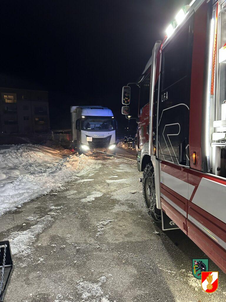 Um 17:55 Uhr wurden wir zu einer LKW-Bergung in die Hofwiese alarmiert. Der Lenker des Sattelschleppers ließ sich von seinem Navigationsgerät in die Irre führen und wollte vor dem Kindergarten in der Hofwiese umdrehen. Dabei blieb er hängen. Wir zogen das Fahrzeug mit Hilfe unserer Seilwinde am Löschfahrzeug aus der misslichen Lage.