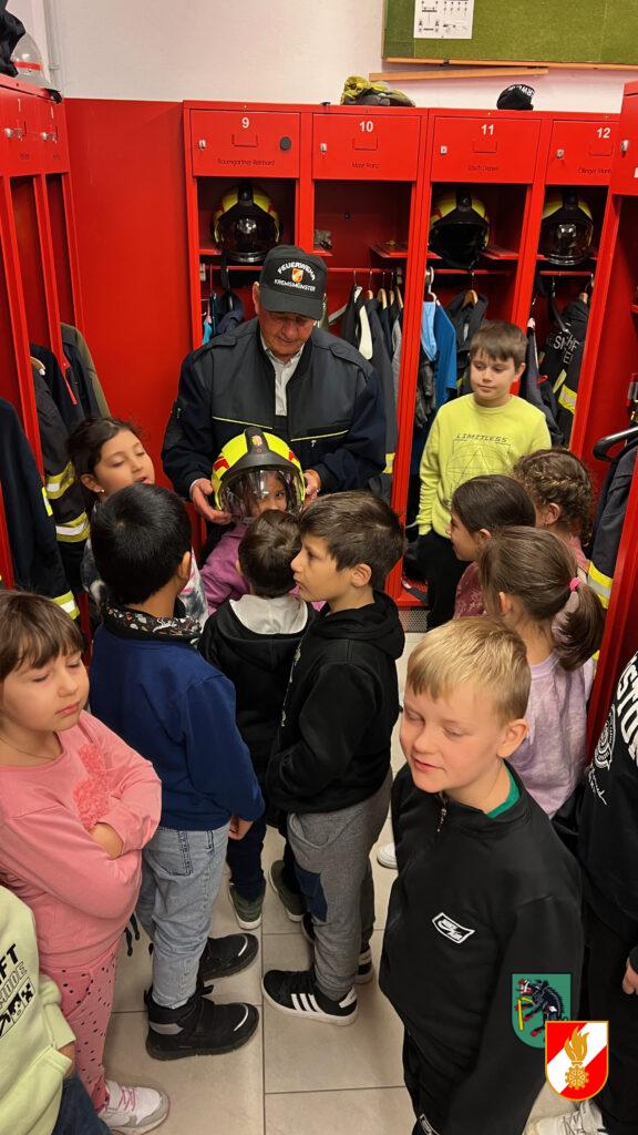 Die Vorschule der Volksschule Kremsmünster besuchte uns mit 13 Kindern. Schon in der Schule arbeiteten die Kinder mit Unterrichtsmaterialien aus dem Gemeinsam.Sicher.Feuerwehr Ordner und freuten sich ihr Wissen in die Praxis umzusetzen. Bei der Führung durch unser Feuerwehrhaus zeigten wir ihnen wie die Alarmierungskette nach dem Anruf am Notruf funktioniert. Dabei konnten sie eine Übungsalarmierung miterleben. Im Anschluss konnten die Kinder verschiedene Geräte ausprobieren. Am Ende konnten die Kinder noch mit Bechern eine „historische Eimerkette“ ausprobieren und sahen dabei wie früher die Brandbekämpfung mit einfachsten Mitteln funktionierte.
