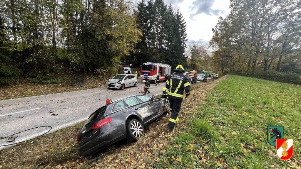 Am 07.11.2023 wurden wir gemeinsam mit der Feuerwehr Wartberg an der Krems zu einem Verkehrsunfall mit dem Stichwort „eingeklemmte Person“ auf die Schlierbacher Landesstraße Höhe Kreuzung Fa. Sturmberger alarmiert. Beim Eintreffen unseres Kleinrüstfahrzeuges waren zum Glück keine Personen mehr im Fahrzeug eingeklemmt und wurden bereits vom Roten Kreuz erstversorgt. Unsere Aufgabe beschränkte sich auf die Spannungsfreischaltung der Fahrzeuge und Einrichtung eines Lotsendienstes. Die Fahrbahn wurde von der Straßenmeisterei gesäubert und die Verletzten vom Roten Kreuz und dem Hubschrauber Martin 3 in umliegende Krankenhäuser gebracht. Die Schlierbacher Landesstraße war ca. 1 Stunde für den Verkehr gesperrt.