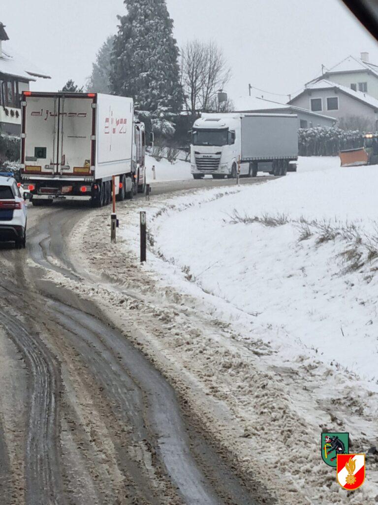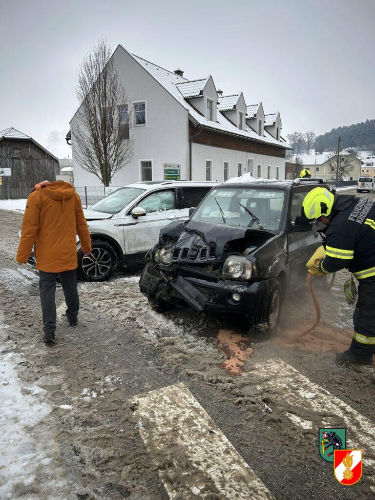 Um 08:55 Uhr wurden wir zu einer LKW-Bergung auf die Kremsmünsterer Ldstr. KM 8,8 alarmiert. Ein Sattelzug blieb am Berg hängen und konnte aus eigener Kraft nicht mehr anfahren. Wir zogen das Gespann mit unserem Löschfahrzeug über den Berg. Beim Einrücken wurden wir zu einem Verkehrsunfall in die Bahnhofstraße alarmiert. Zwei Fahrzeuge waren im Kreuzungsbereich kollidiert, dabei traten Betriebsflüssigkeiten aus. Wir säuberten die Fahrbahn mit Ölbindemittel und stellten die Fahrzeuge auf einen nahegelegenen Parkplatz. Dort wurden diese von einem Abschleppunternehmen abtransportiert.
