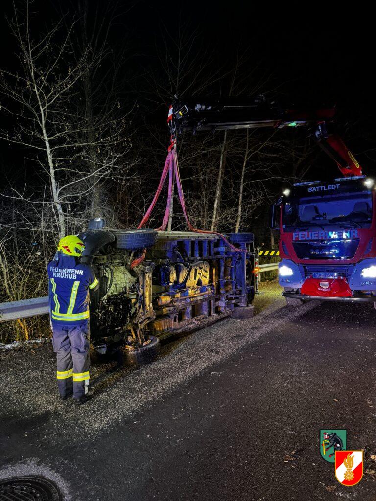 Mit Unterstützung der FF Sattledt konnte das Fahrzeug wieder auf die Straße gehoben werden. Es wurde anschließend von einem Abschleppunternehmen abtransportiert.