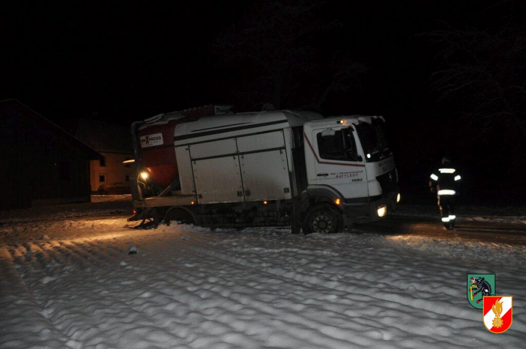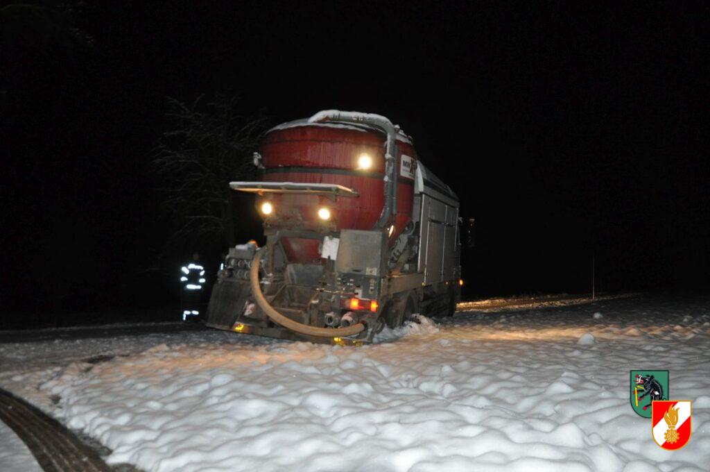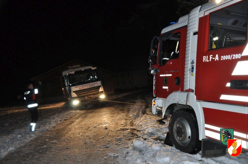 Am 11. Dezember wurde die Feuerwehr Irndorf um 19:15 Uhr zu einer Fahrzeugbergung im Schacher alarmiert. Ein LKW war von der Fahrbahn abgekommen und blieb mit einem Hinterrad im angrenzenden Feld stecken. Mit der Seilwinde des Rüstlöschfahrzeugs war der vollbeladene Mischzug schnell geborgen und konnte seine Fahrt wieder weiter fortsetzen.