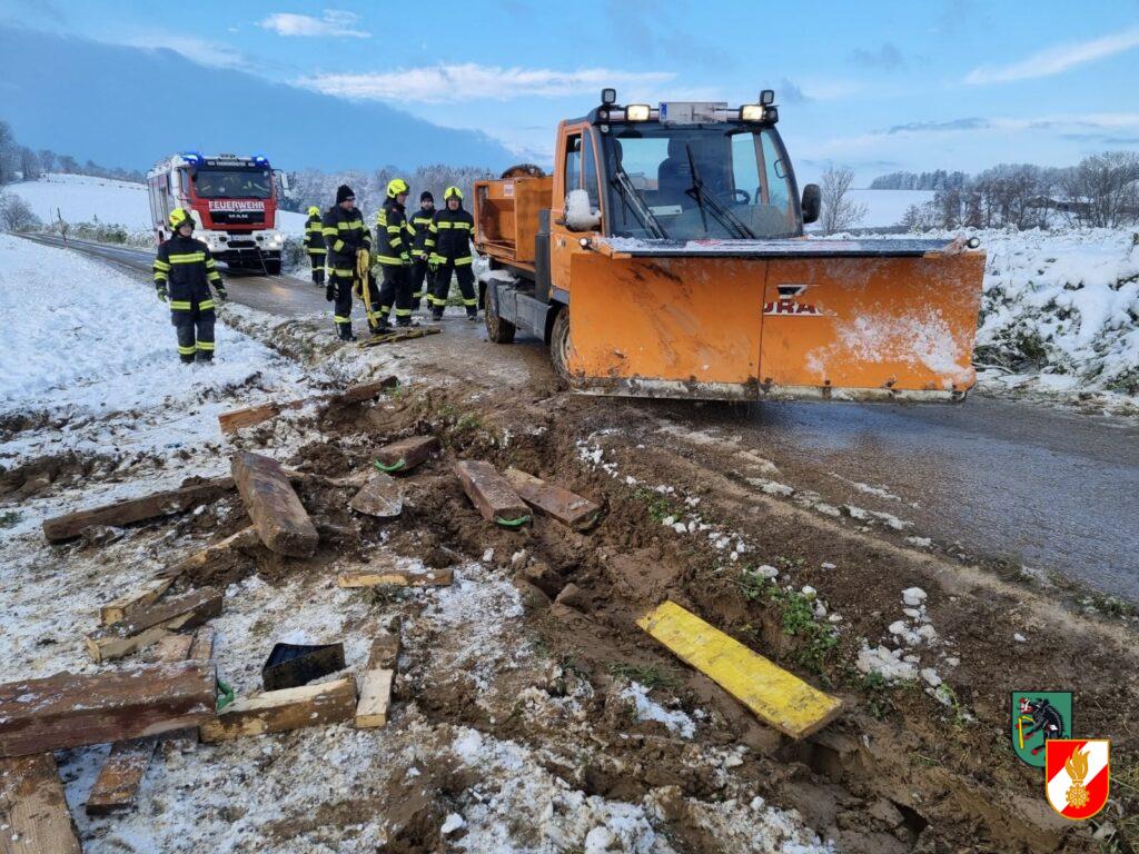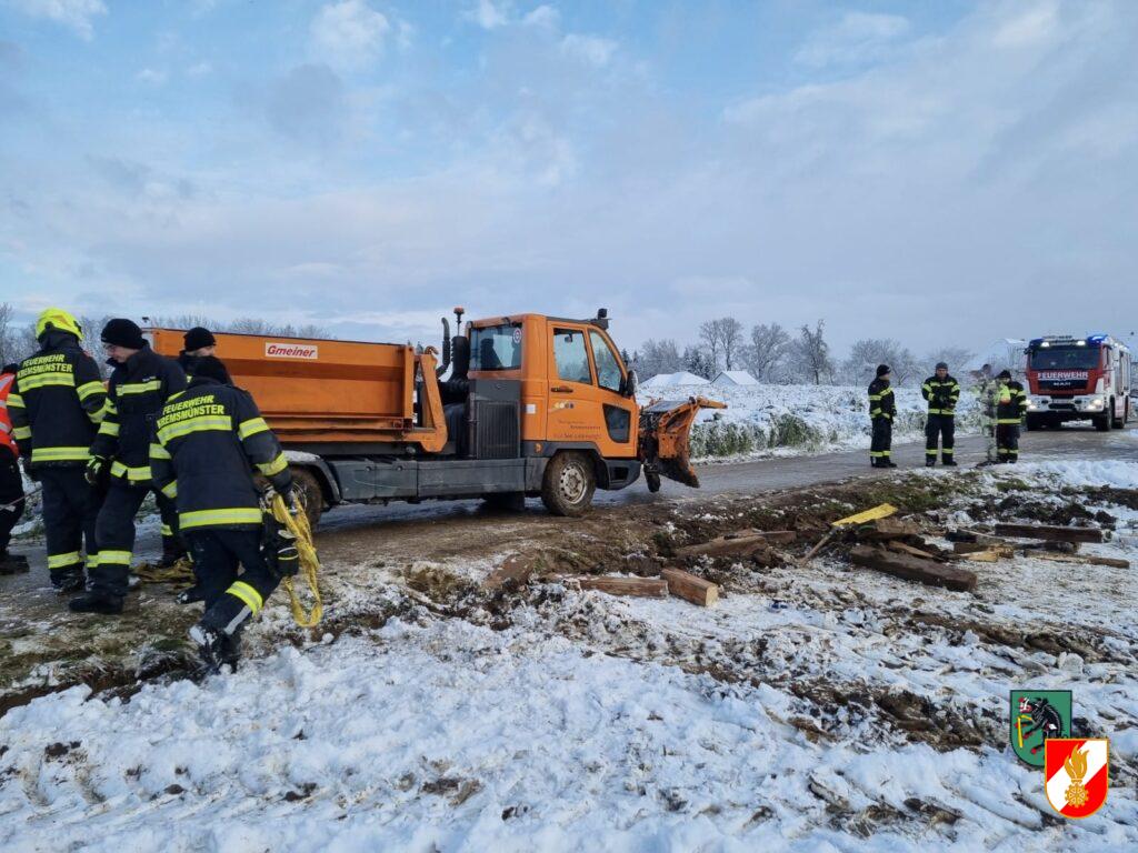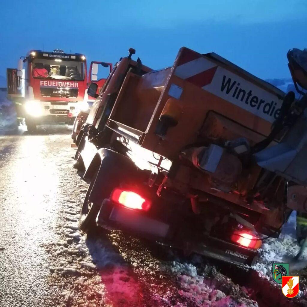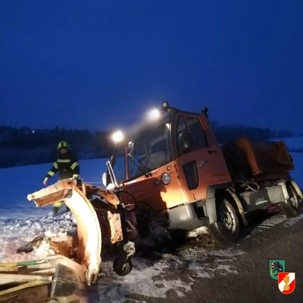Am 11.12.2022 wurde die Feuerwehr Kremsmünster zu einer Schneepflugbergung in das Gemeindegebiet Helmberg alarmiert. Der Gemeinde-Schneepflug kam von der Straße ab und sank im angrenzenden Feld ein. Mit Hilfe von Unterbaumaterial und eines ansässigen Landwirtes konnte das Fahrzeug zurück auf die Straße gezogen werden.