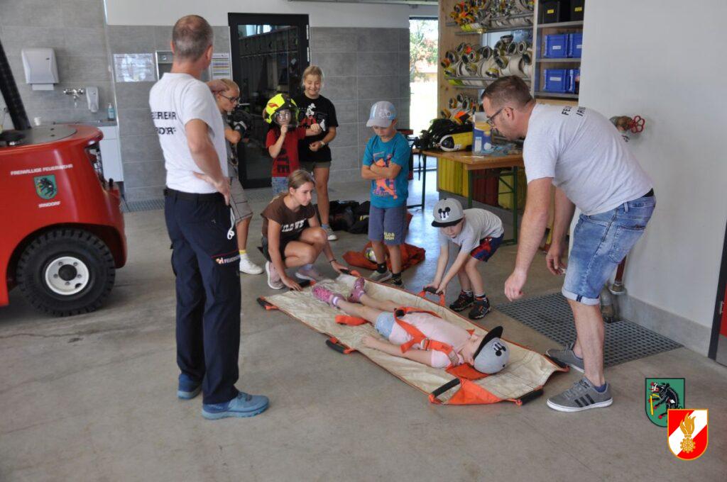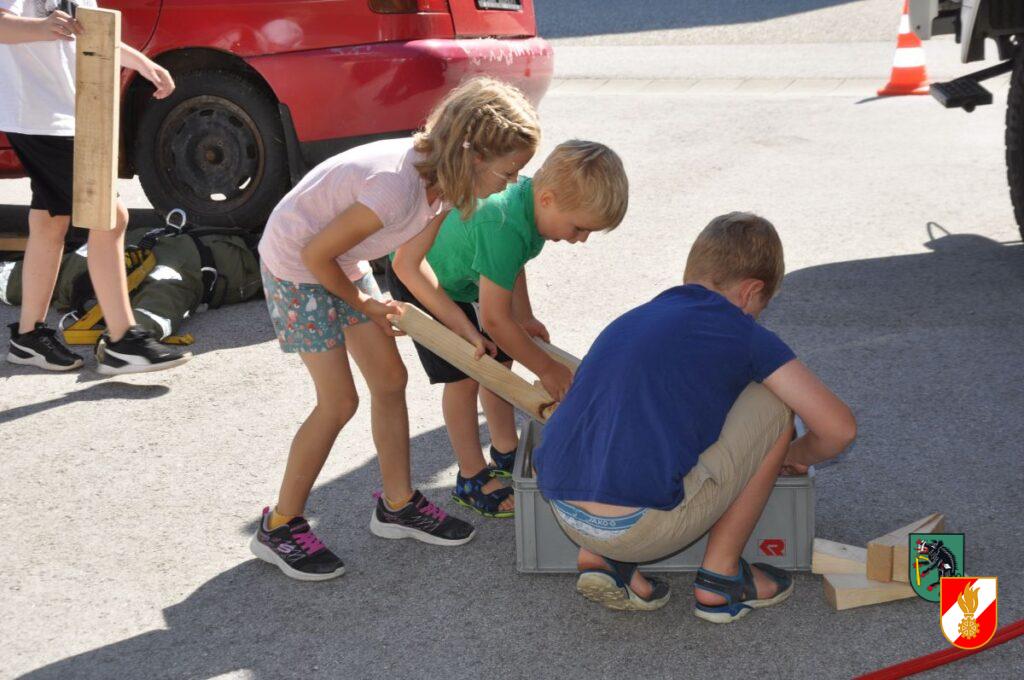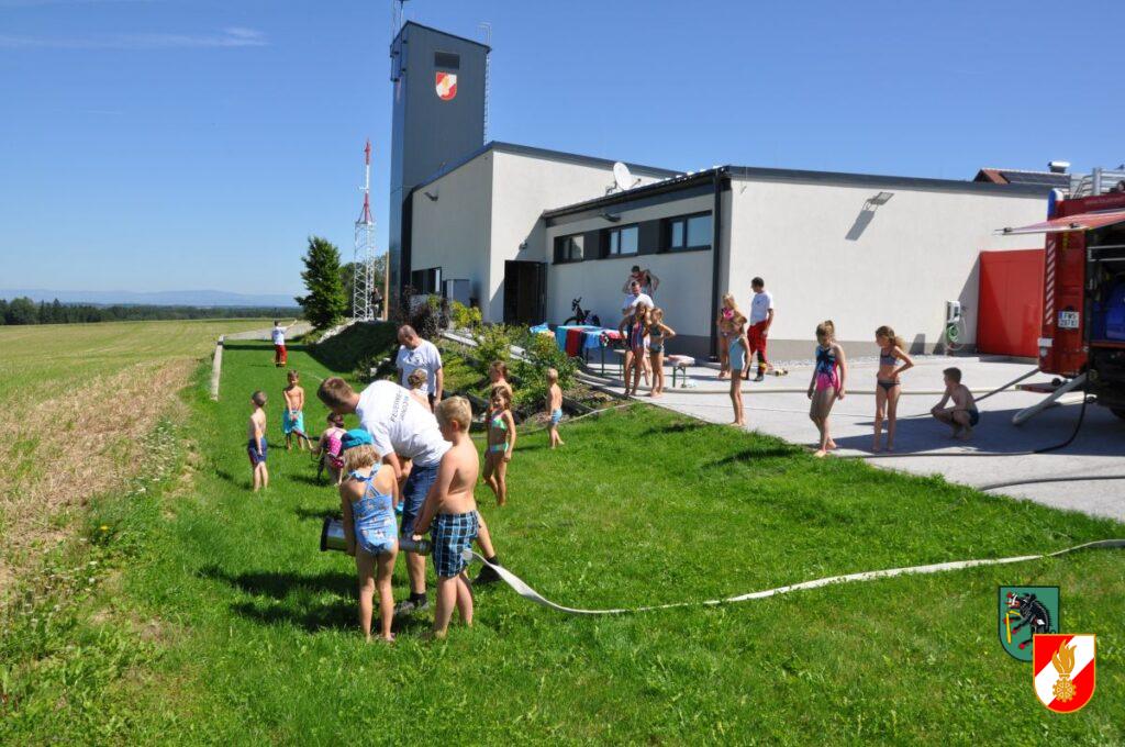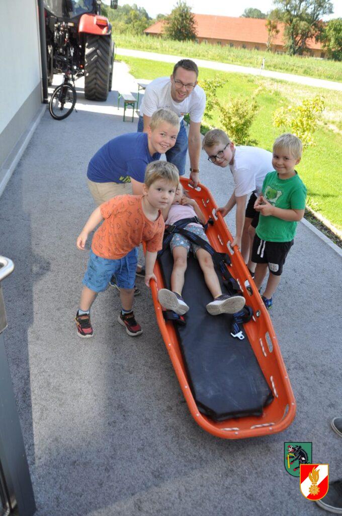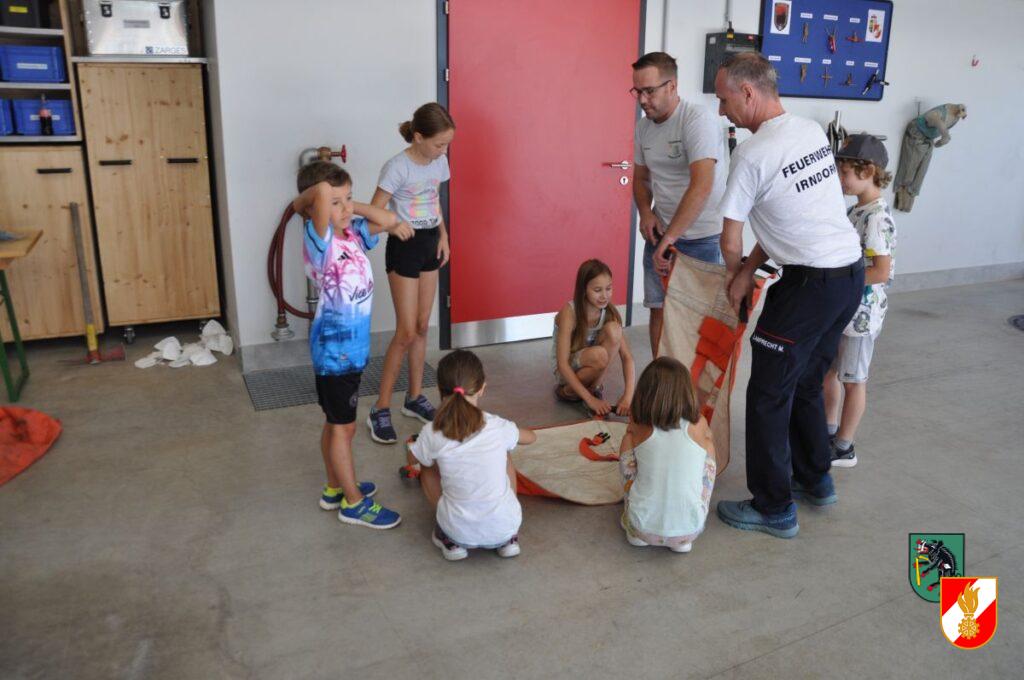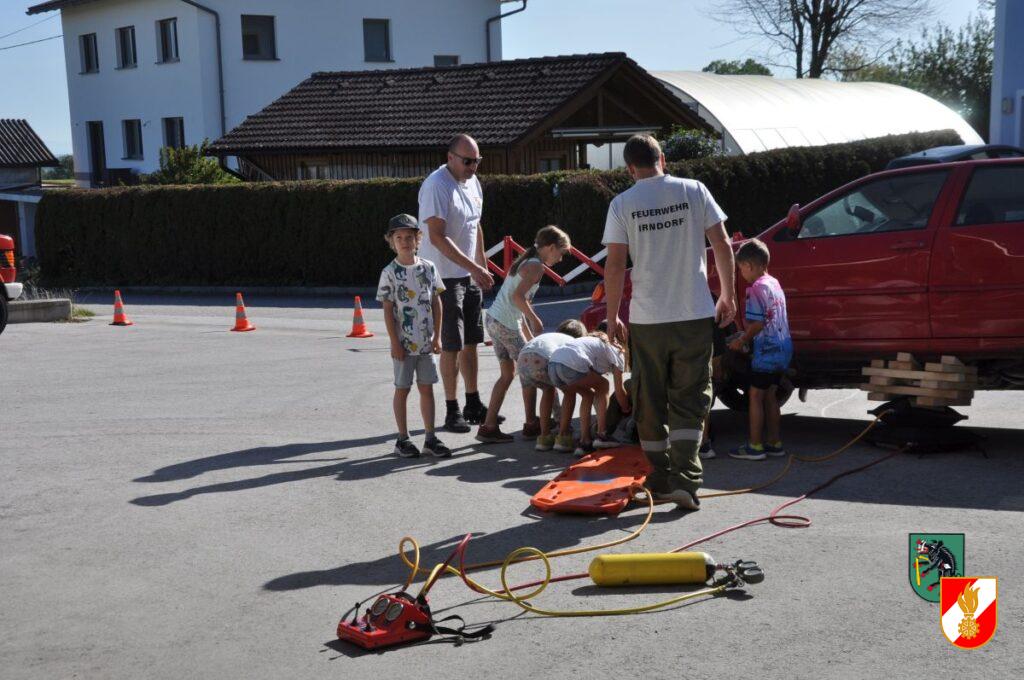 Wie jedes Jahr fand auch heuer wieder die Ferienpassaktion bei der Feuerwehr Irndorf statt, bei der am 12. August 2023 insgesamt 23 Kinder teilnahmen. Den ganzen Vormittag lang konnten die Kinder bei verschiedenen Stationen die Aufgaben der Feuerwehr kennenlernen. Dabei wurde eine verletzte Person in einem verrauchten Raum gesucht, mit den Hebekissen zwei Personen unter einem Auto befreit, mit dem Spreizer des hydraulischen Rettungsgeräts das Geschick getestet und am Schlauchturm über eine Schrägseilbahn abgeseilt. Dann gab es vor der Rundfahrt mit den Feuerwehrfahrzeugen noch ein leckeres Eis. Genau richtig an diesem heißen Sommertag konnten sich die Kids unter dem Hydroschild noch abkühlen, bevor es dann zum Abschluss noch Würstel und Schartner zur Stärkung gab.