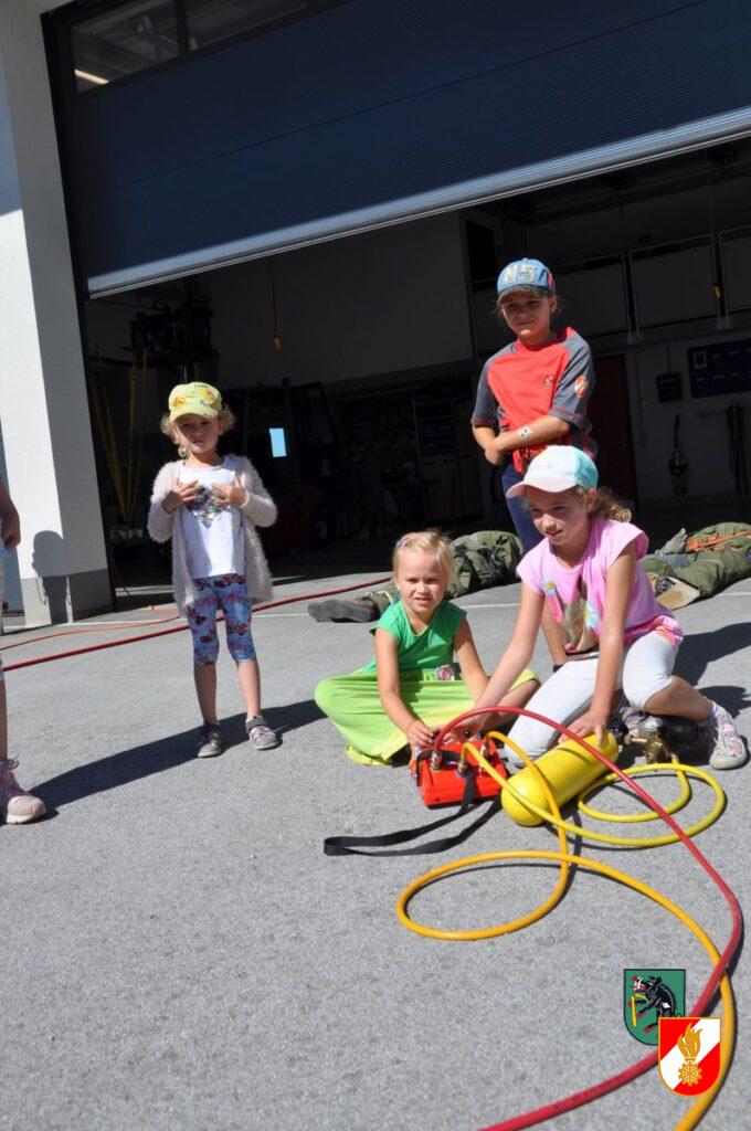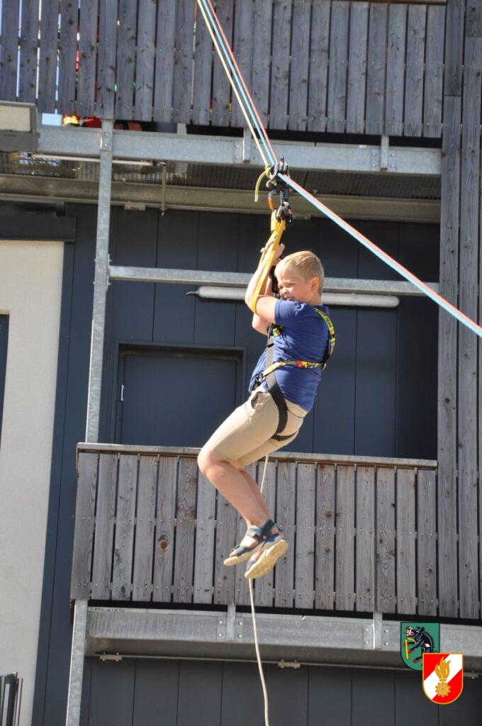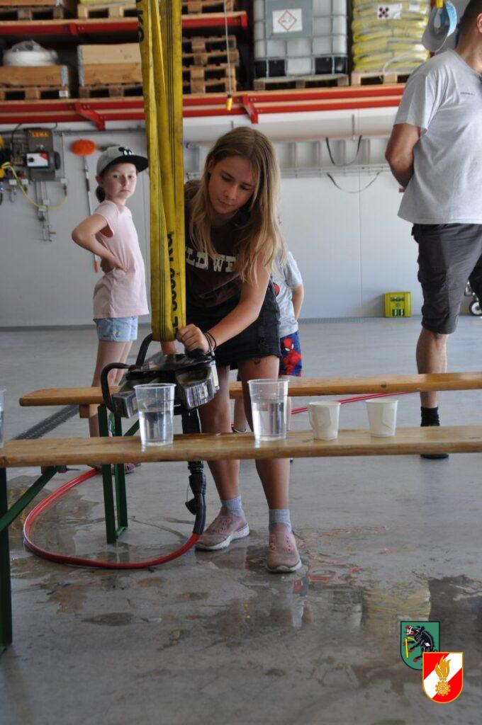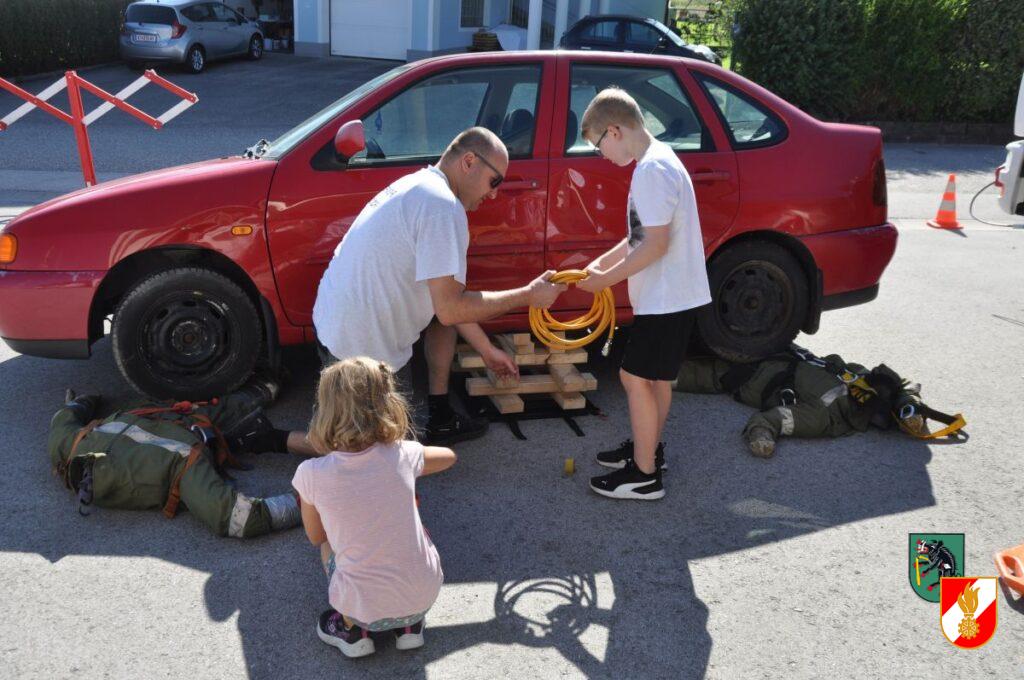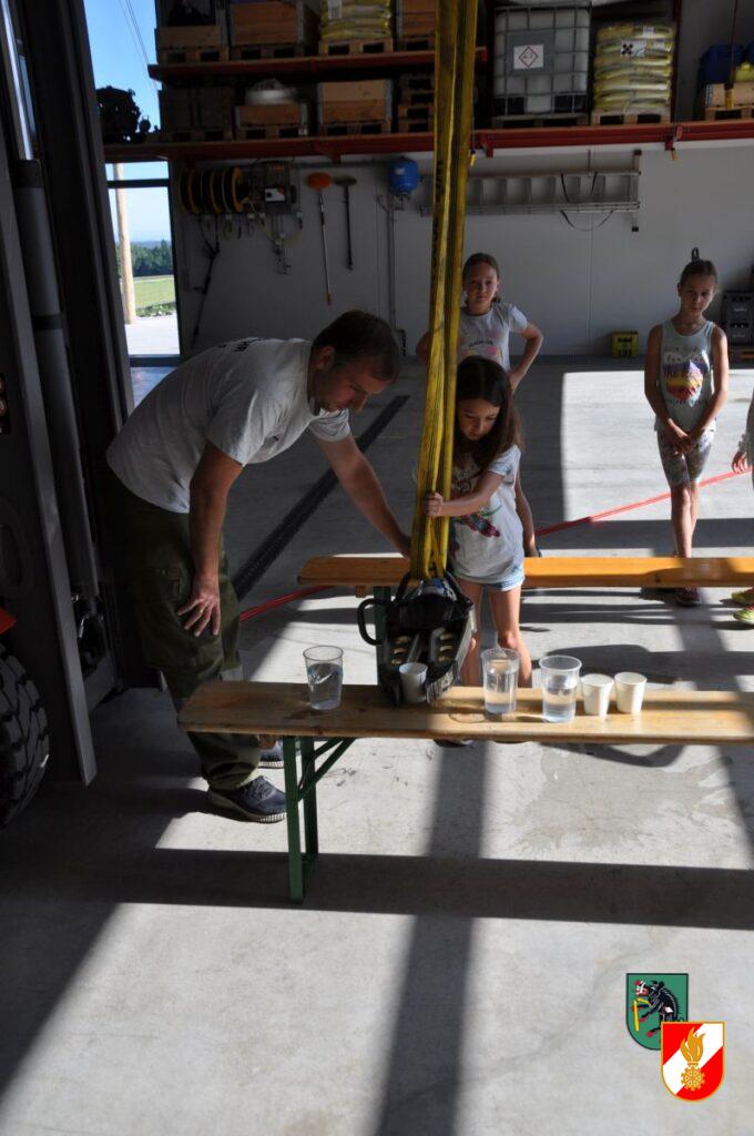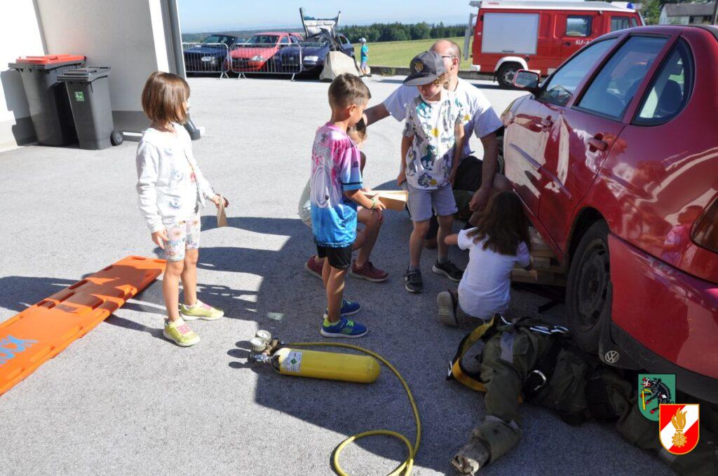 Wie jedes Jahr fand auch heuer wieder die Ferienpassaktion bei der Feuerwehr Irndorf statt, bei der am 12. August 2023 insgesamt 23 Kinder teilnahmen. Den ganzen Vormittag lang konnten die Kinder bei verschiedenen Stationen die Aufgaben der Feuerwehr kennenlernen. Dabei wurde eine verletzte Person in einem verrauchten Raum gesucht, mit den Hebekissen zwei Personen unter einem Auto befreit, mit dem Spreizer des hydraulischen Rettungsgeräts das Geschick getestet und am Schlauchturm über eine Schrägseilbahn abgeseilt. Dann gab es vor der Rundfahrt mit den Feuerwehrfahrzeugen noch ein leckeres Eis. Genau richtig an diesem heißen Sommertag konnten sich die Kids unter dem Hydroschild noch abkühlen, bevor es dann zum Abschluss noch Würstel und Schartner zur Stärkung gab.