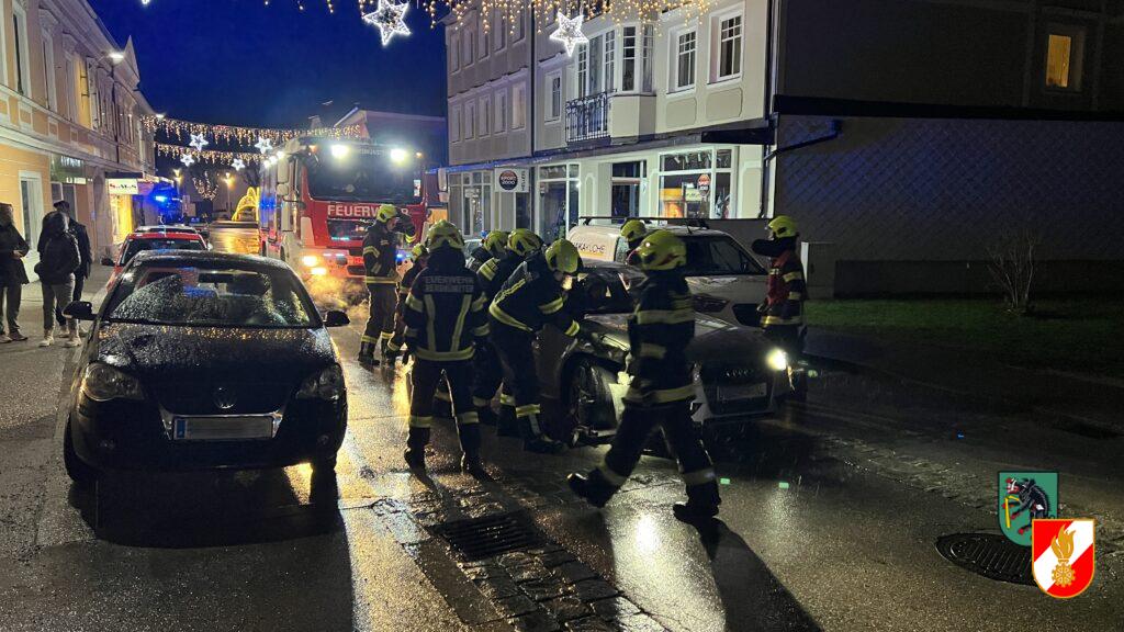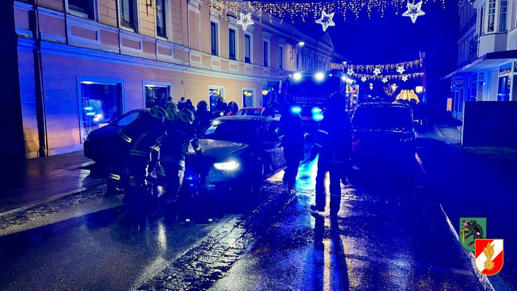 Um 22:19 Uhr wurden wir zu einem Verkehrsunfall in die Hauptstraße alarmiert. Ein Fahrzeug war in einen parkenden PKW geprallt. Wir stellten mit Hilfe unseren Rangierwagen den fahruntüchtigen Audi auf einen Parkplatz, von wo er durch ein Abschleppunternehmen abtransportiert wurde.