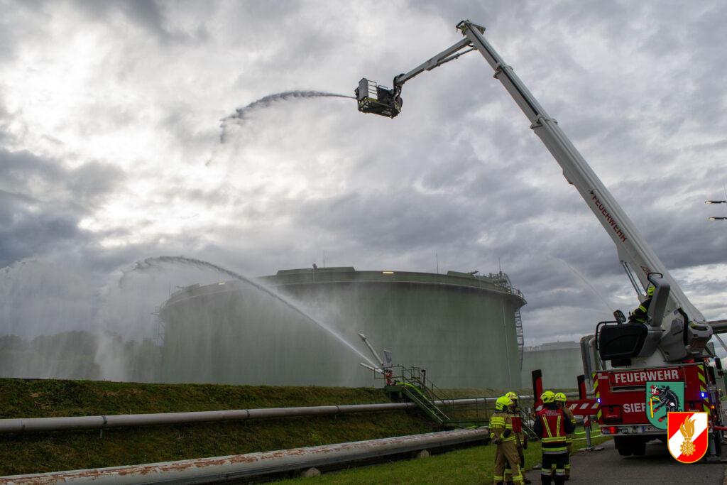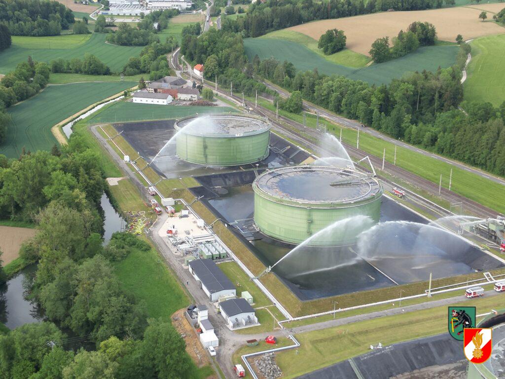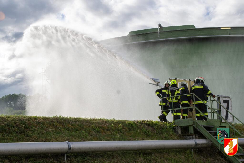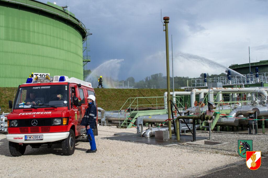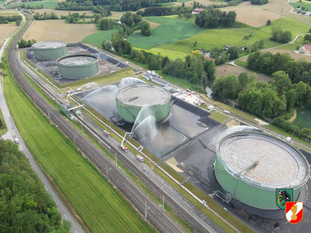 Die Tanks sind mit redundanten Brandfrüherkennungssystemen und vollautomatischen Beschäumungsanlagen ausgestattet. Darüber hinaus sieht die Notfallplanung für nicht vorhersehbare Zwischenfälle einen umfassenden Einsatz der Feuerwehren vor. Unter der Annahme, dass ein Tankbehälter in Vollbrand steht und zusätzlich Rohöl in die nahe gelegene Krems austritt, wurde am 17.05.2024 eine Großübung durchgeführt. Die Herausforderung bestand darin 23 Feuerwehren aus fünf Bezirken, mit 38 Fahrzeugen und 285 Einsatzkräften zu koordinieren.
