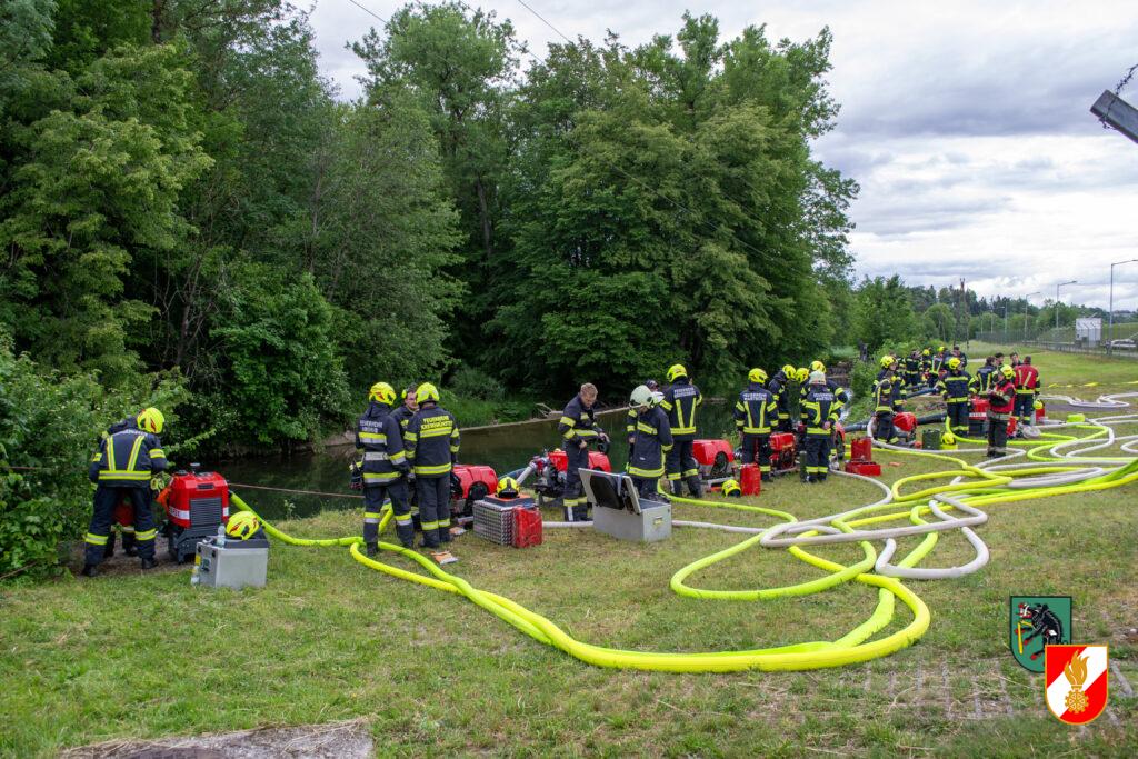 Auf Befehl des Einsatzleiters wurden im Abschnitt I und II je zwei Wasserwerfer mit einer Leistung von 4.000l/min pro Werfer und einer Wurfweite von 70 m in Betrieb genommen.