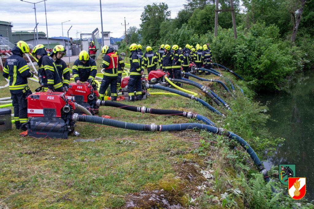 Beim Eintreffen der ersten Einsatzkräfte waren bereits alle stationären Löschsysteme in Vollbetrieb. Zwei Feuerlöschpumpen sicherten mit einer Leistung von 30.000l/min bei 10 bar Ausgangsdruck die Löschwasserversorgung.