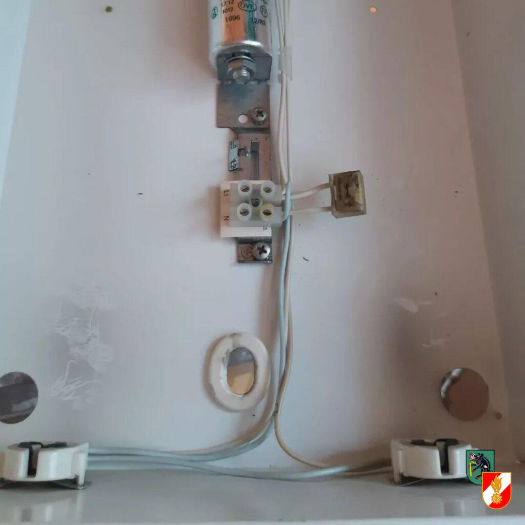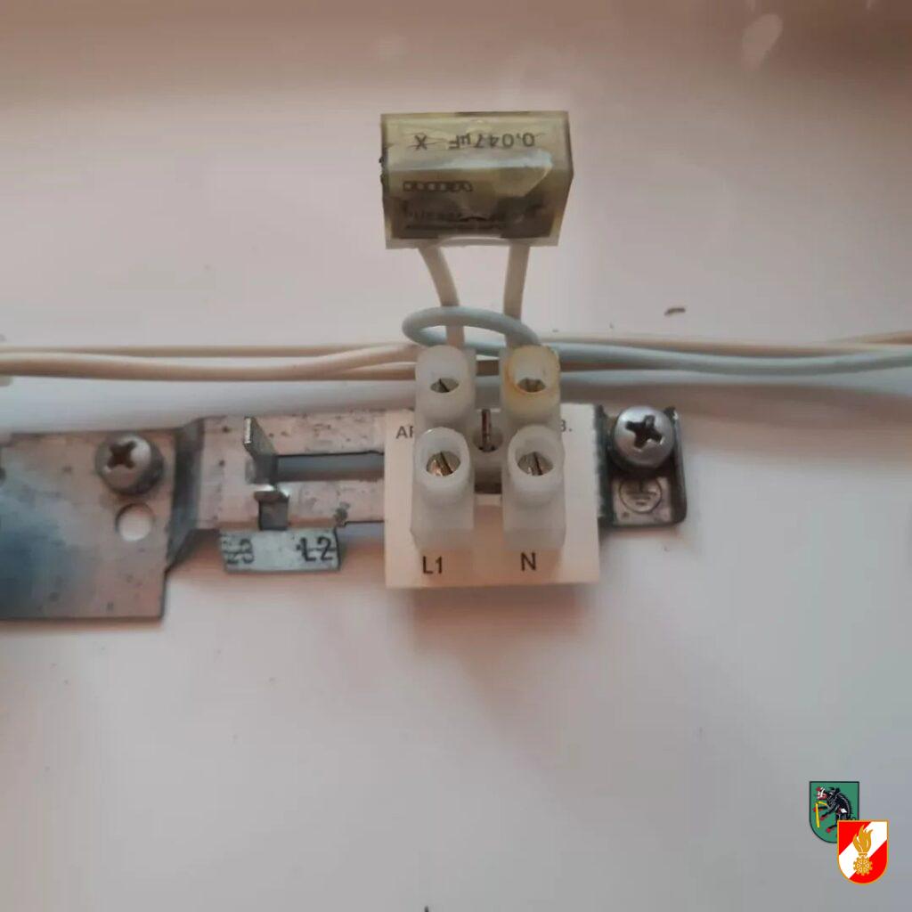Am späten Nachmittag des 17.08.2023 wurden wir zu einem Brandverdacht ins Musikheim Kremsmünster (derzeitiger Standort noch oberhalb der FF) alarmiert. Ein anwesender Musiker bemerkte Brandgeruch und Nebelschwaden im Bereich einer Lampe. Wir haben die Lampe stromlos geschalten und anschließend demontiert. Dabei konnte ein durchgebrannter Entstörkondensator vorgefunden werden.