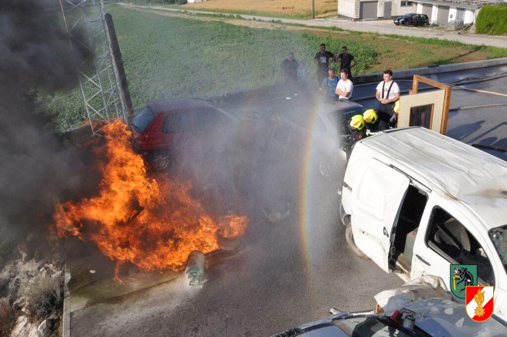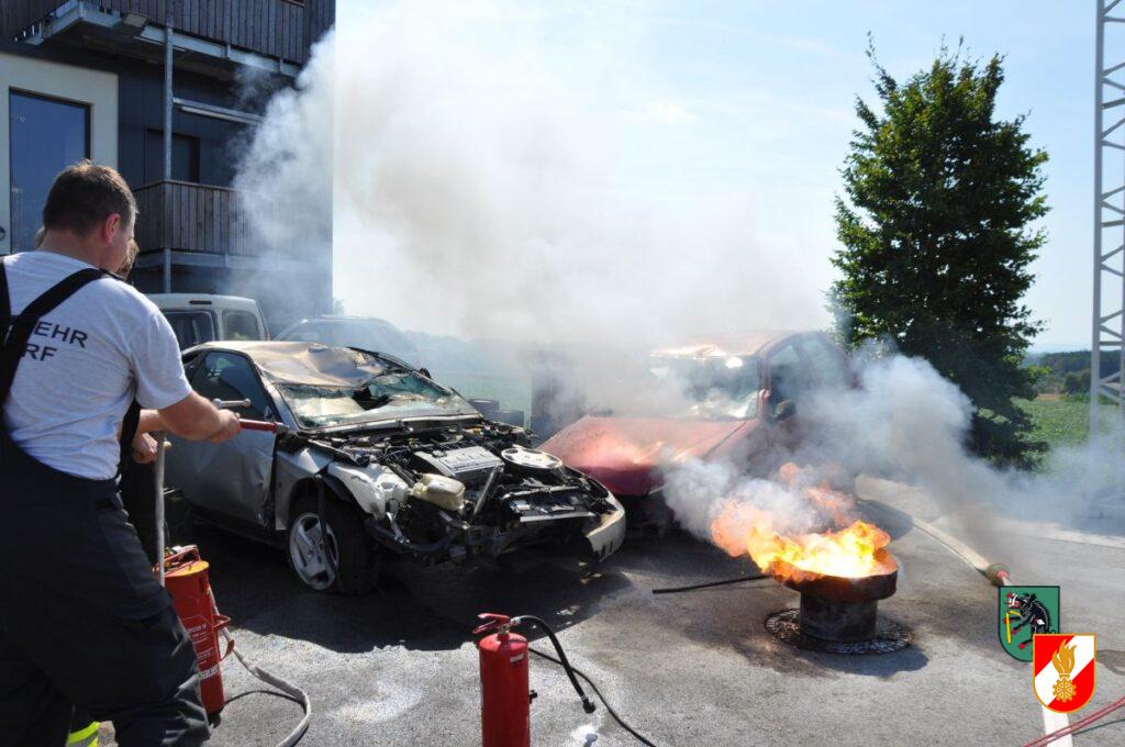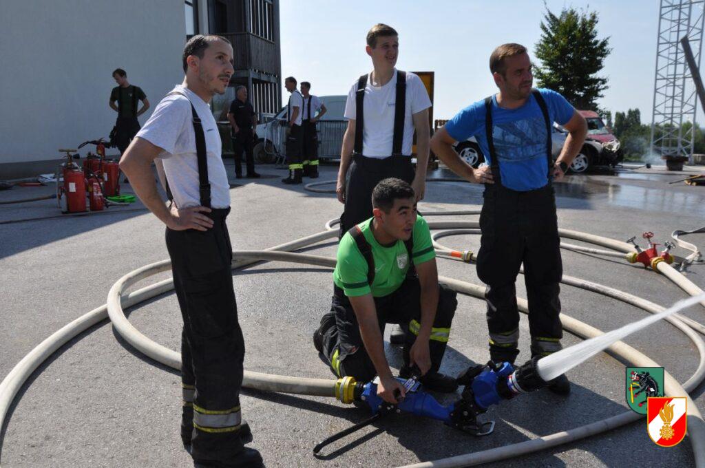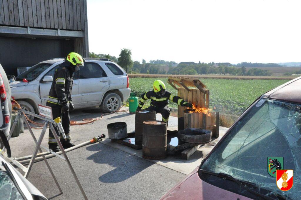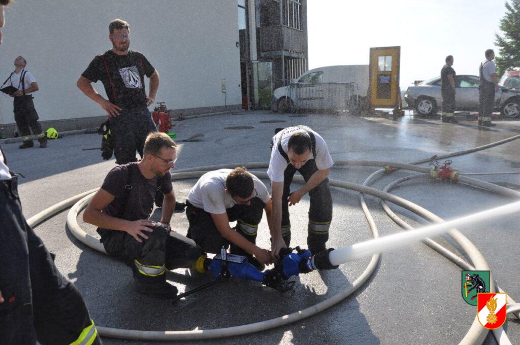 Mit etwas Verspätung durch den Einsatz auf der B122 startete am 19. Juni 2024 um ca. 14:30 der erste Ausbildungsnachmittag für die Führungskräfte der Feuerwehr Irndorf. Dadurch sollen die Kameraden des erweiterten Kommandos auf ihre Führungsaufgaben im Einsatzdienst vorbereitet werden. Am Beginn der Ausbildung stand ein Gastvortrag von Stefan Barth von der Berufsfeuerwehr Linz und Ausbilder an der OÖ Landesfeuerwehrschule. Danach wurden auf drei Stationen das Wissen und die praktische Arbeit gefestigt. Die Station 1 befasste sich mit den unterschiedlichen Löschgeräten der Feuerwehr. Vom Feuerpatschen über die Löschdecke, die Kübelspritze hin zu den verschiedenen Feuerlöschern wurden die jeweiligen Anwendungsgebiete erklärt und die Geräte in der Praxis bei realen Bränden angewendet. Bei der Station 2 wurden die unterschiedlichen Strahlrohre und Werfer der Feuerwehr besprochen und deren verschiedenen Funktionen beübt. Die dritte Station beschäftigte sich mit der richtigen Türöffnung und Vorgehensweise im Atemschutzeinsatz und dem Umgang mit dem Hohlstrahlrohr. Nach dem Stationsbetrieb wurde das eben Gelernte bei mehreren Durchgängen mit unterschiedlichen Realbrandszenarien (Küchen- bzw. Fettbrand, Flüssigkeitsbrand, Gasflaschen und Gasleitungsbrand) gefestigt. Ein herzliches Danke an alle Teilnehmer und Ausbilder für den vielen Schweiß und für die fast 5 Stunden intensives Training.