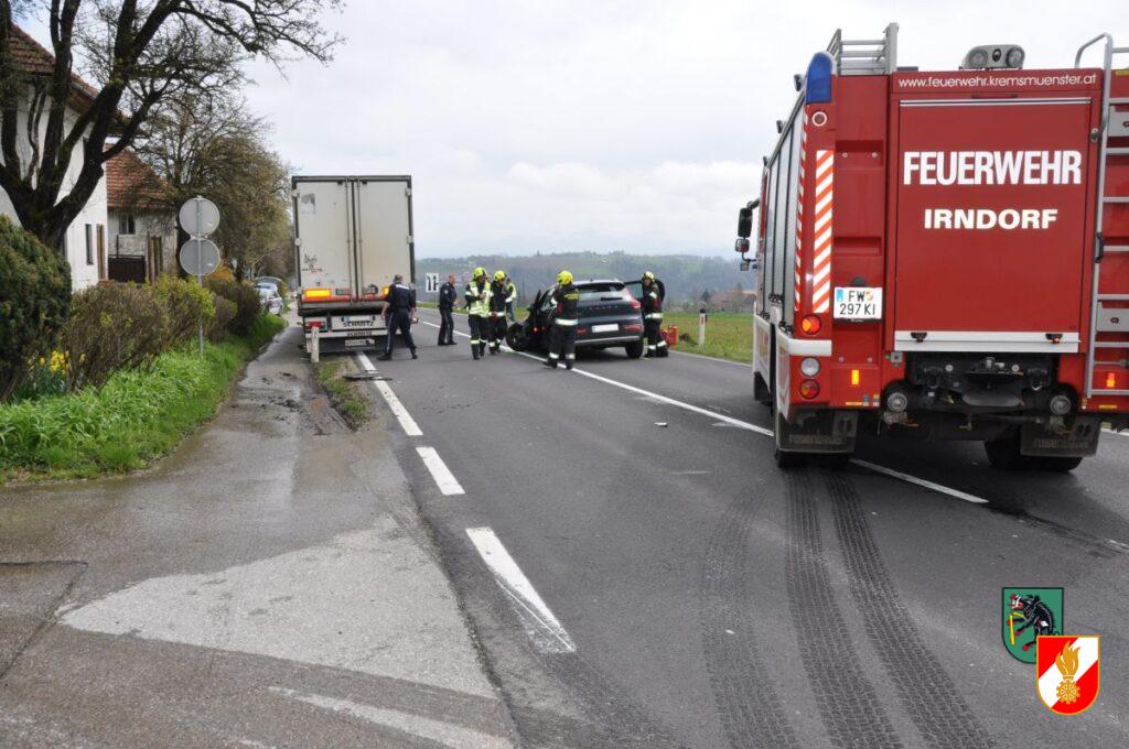 Am 20. April 2023 wurde die Feuerwehr Irndorf um 13:00 Uhr von der Landeswarnzentrale zu Aufräumarbeiten nach einem Verkehrsunfall auf der B122 Voralpenstraße Höhe Kreuzung Neuhofstraße alarmiert. Aus unbekannter Ursache kollidierte ein PKW mit einem LKW. Dabei wurde eine Person verletzt. Seitens der Feuerwehr Irndorf wurde die verletzte Person bis zum Eintreffen der Rettung betreut und die Unfallstelle abgesichert. Nach der Unfallaufnahme durch die Polizei wurde das beschädigte Auto von der Fahrbahn entfernt und die Fahrbahn von auslaufenden Betriebsmitteln befreit. Nach rund einer Stunde konnte der Einsatz beendet und die B122 wieder vollständig für den Verkehr freigegeben werden.