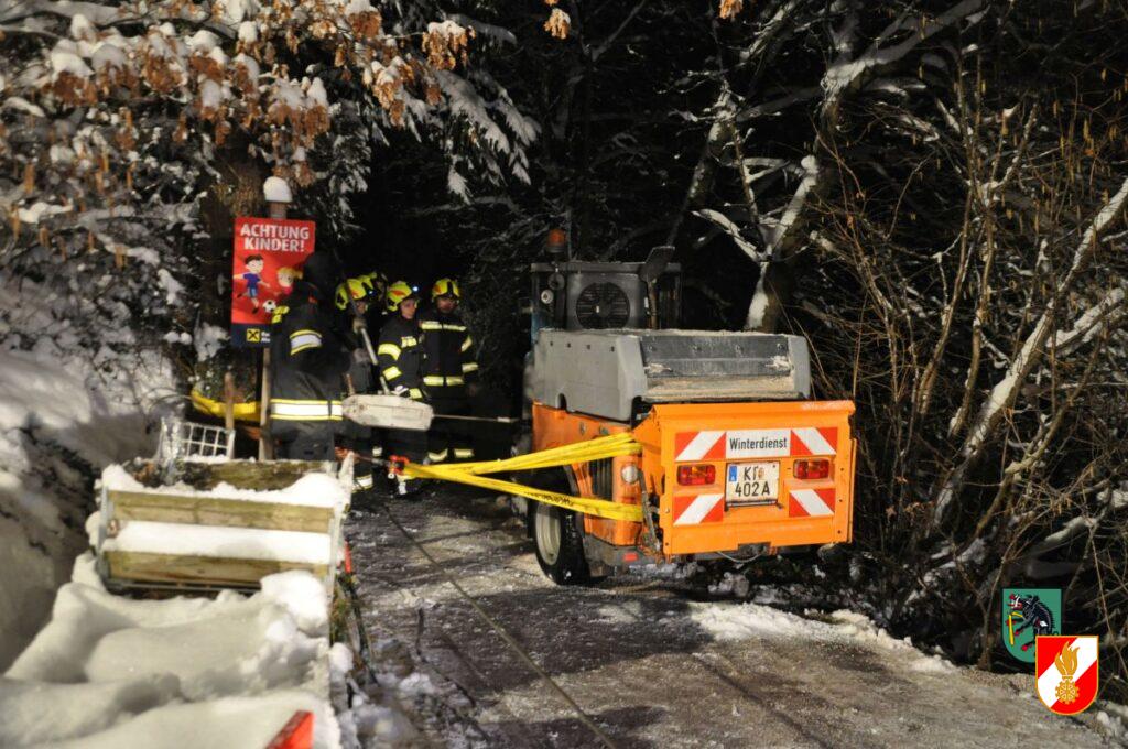Am 22. Jänner 2023 wurde die Feuerwehr Irndorf um 5:36 Uhr zu einer Fahrzeugbergung im Bereich Wilhelmshöhe alarmiert. Ein Räumfahrzeug kam auf einem steilen Straßenabschnitt von der Fahrbahn ab. Der Fahrer hatte dabei großes Glück das einige Sträucher den Absturz des Schneepflugs über die darunterliegende Böschung verhinderte. Durch die Feuerwehr Irndorf wurde das Fahrzeug mit dem Greifzug gesichert. Danach wurde es mit der Seilwinde des Rüstlöschfahrzeuges wieder auf die Straße gezogen. Nach rund einer Stunde konnte die Bergung erfolgreich abgeschlossen werden.