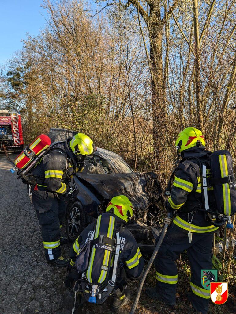 Wir wurden am 23.11.2024 kurz vor 15:00 Uhr gemeinsam mit der FF Krühub zu einem Pkw-Brand alarmiert. Aus unbekannter Ursache kollidierten 2 Fahrzeuge in der Au frontal, wobei ein Pkw in Brand geriet. Das brennende Fahrzeuge wurde abgelöscht, die Verletzten durch das Rote Kreuz versorgt und die beiden Fahrzeuge nach erfolgter Unfallaufnahme dem Abschleppdienst übergeben. Während den Aufräumarbeiten wurde eine örtliche Umleitung eingerichtet.