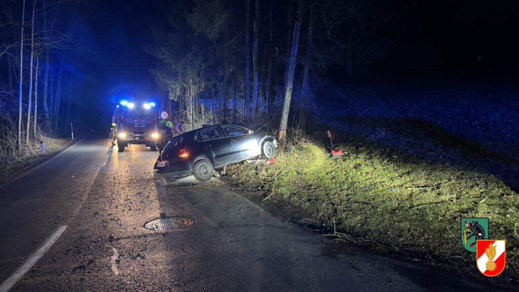 Am 27.02.2025 wurden wir kurz vor Mitternacht zu einer Pkw-Bergung im Bereich Wolfgangstein alarmiert. Beim Eintreffen zeigte sich, dass es sich um einen Verkehrsunfall mit Blechschaden handelte. Nach Unfallaufnahme durch die Polizei wurde das beschädigte Fahrzeug entfernt und die Fahrbahn von Betriebsmitteln und Fahrzeugteilen gereinigt.