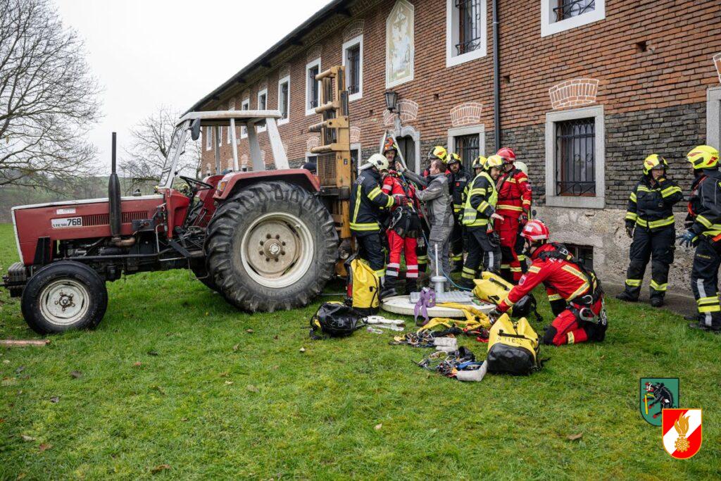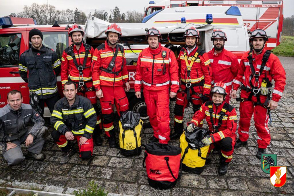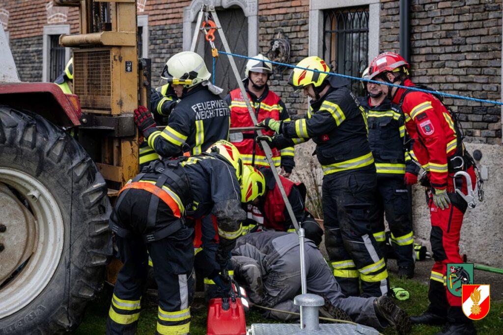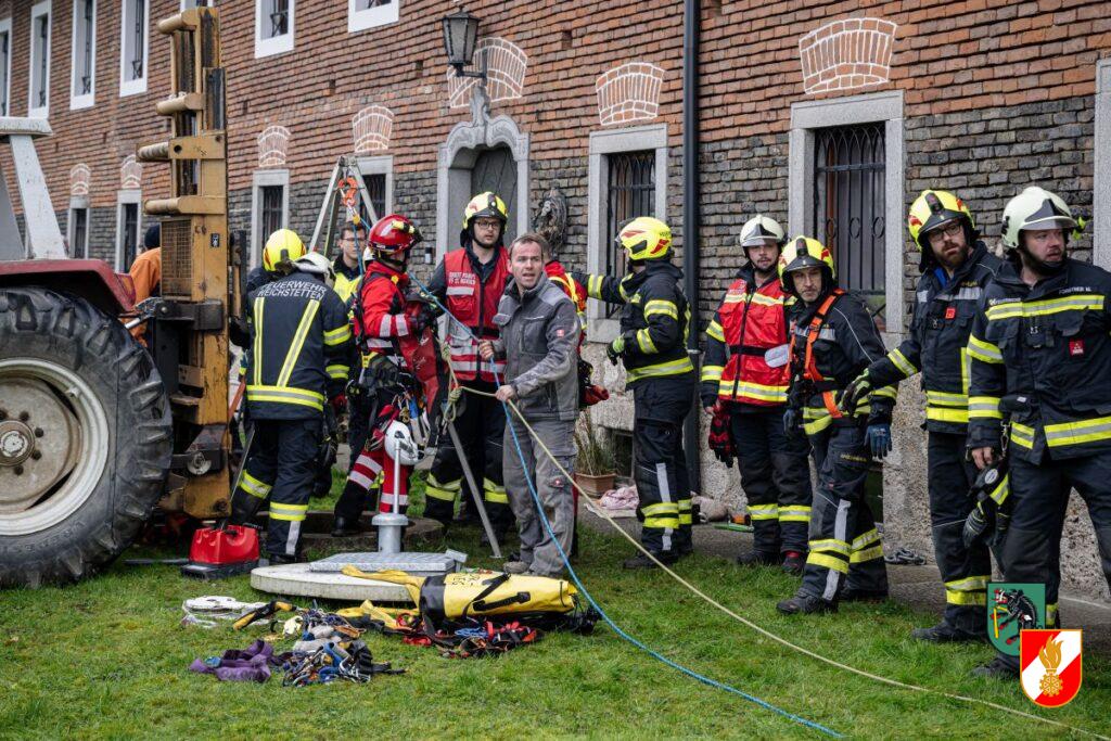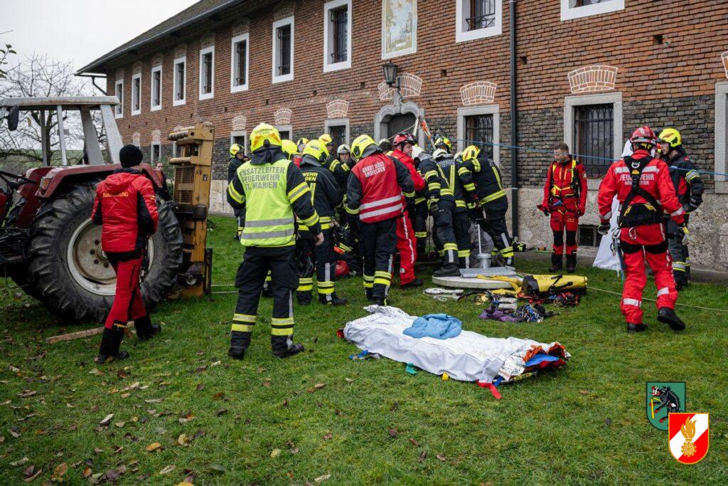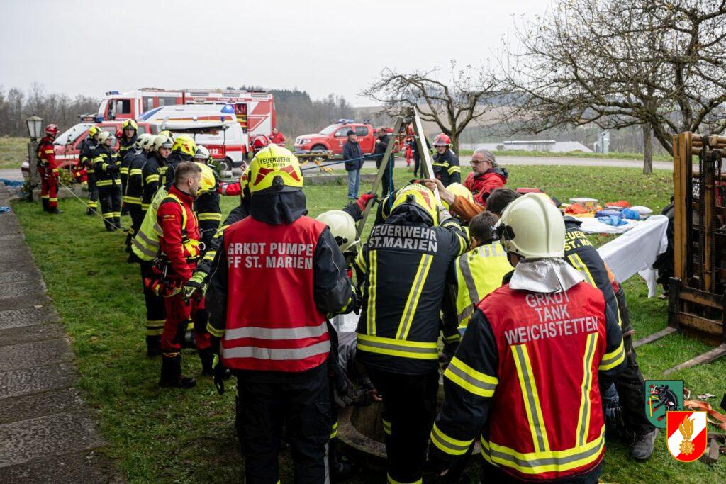 Am 29. November 2022 wurden die Höhenretter der Feuerwehr Irndorf um 13:52 Uhr gemeinsam mit dem Stützpunkt Axberg zur Unterstützung der Feuerwehren St. Marien bei Neuhofen und Weichstetten bei einer Personenrettung in der Gemeinde St. Marien alarmiert. Ein Arbeiter war bei Instandsetzungsarbeiten in einen ca. 23 m tiefen Brunnen gefallen. Der beim Sturz glücklicherweise nur leicht verletze Arbeiter konnte sich im Brunnen am Pumpenrohr über Wasser halten. Seitens der Feuerwehr Höhenretter wurde sofort ein Retter zum Verunfallten abgeseilt und dieser vom Retter gesichert. Im Anschluss wurden die Beiden mittels einer Akkuwinde nach oben gezogen. Wieder an der Erdoberfläche wurde der Verletzte dem Notarztteam des Rettungshubschraubers übergeben. Nach der Erstversorgung wurde der Arbeiter zur Kontrolle ins Krankenhaus geflogen. Durch die gute Zusammenarbeit aller eingesetzten Einsatzkräfte konnte die Person innerhalb von nur knapp einer halben Stunde aus dem Brunnen gerettet werden.