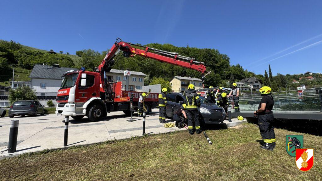 Heute wurden wir um 11:53 Uhr zu einer Pkw-Bergung in die Hofwiese alarmiert. Ein PKW blieb im Böschungsbereich der Tassilo-Apotheke hängen. Mit Hilfe unseres Ladekrans am Last-Fahrzeug wurde das Fahrzeug wieder auf die Straße .