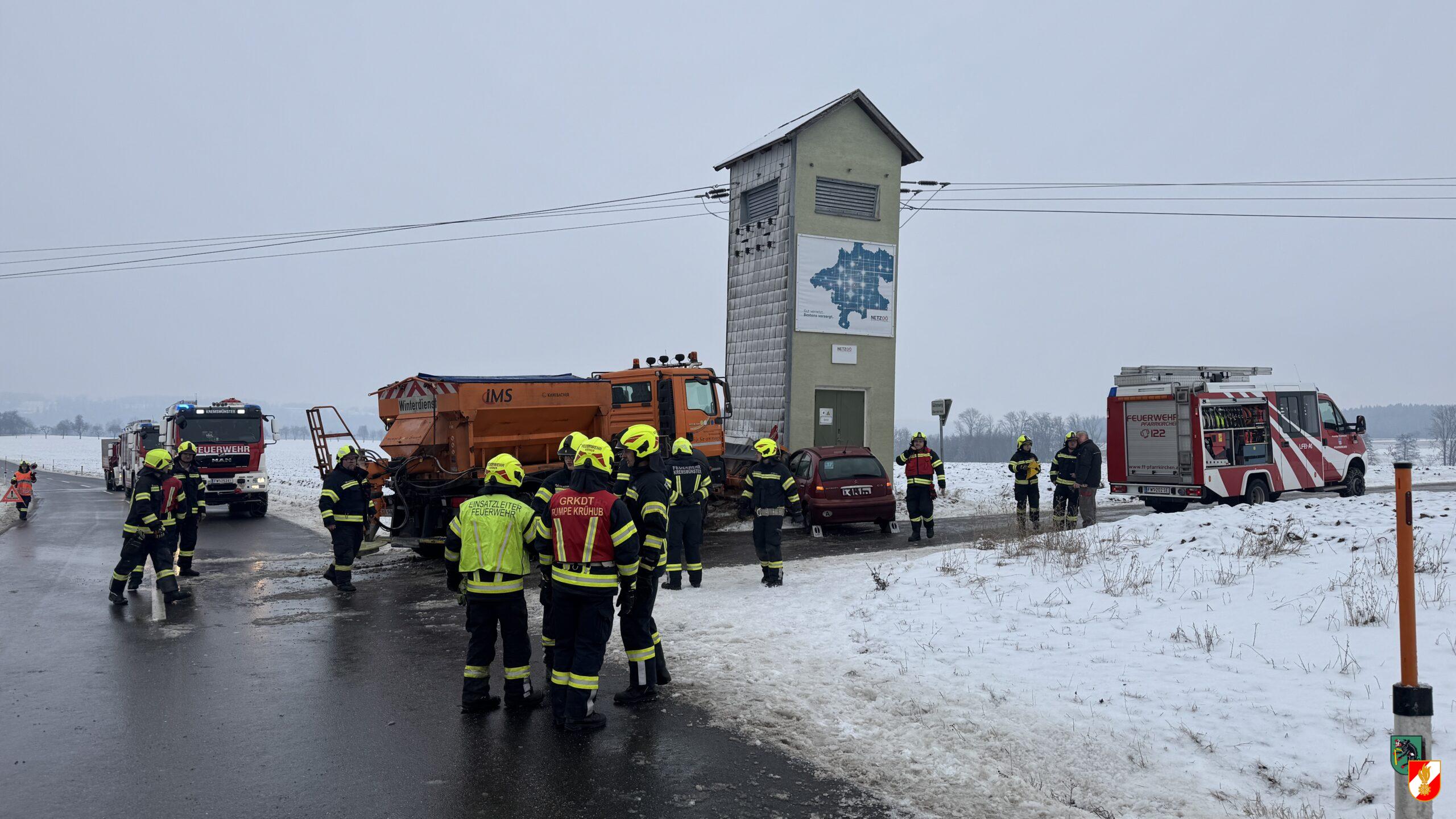 Um 12:10 Uhr wurden wir gemeinsam mi den Feuerwehren Pfarrkirchen und Krühub zu einem Verkehrsunfall auf der alten Bad-Haller-Straße mit dem Stichwort "Personenrettung aus PKW" alarmiert. Ein Schneepflug war mit einem PKW kollidiert. Zum Glück wurde der PKW-Lenker beim Anprall nicht eingeklemmt und unsere Aufgabe beschränkte sich auf der Einrichtung eines Lotsendienstes. Der verunfallte PKW [...]