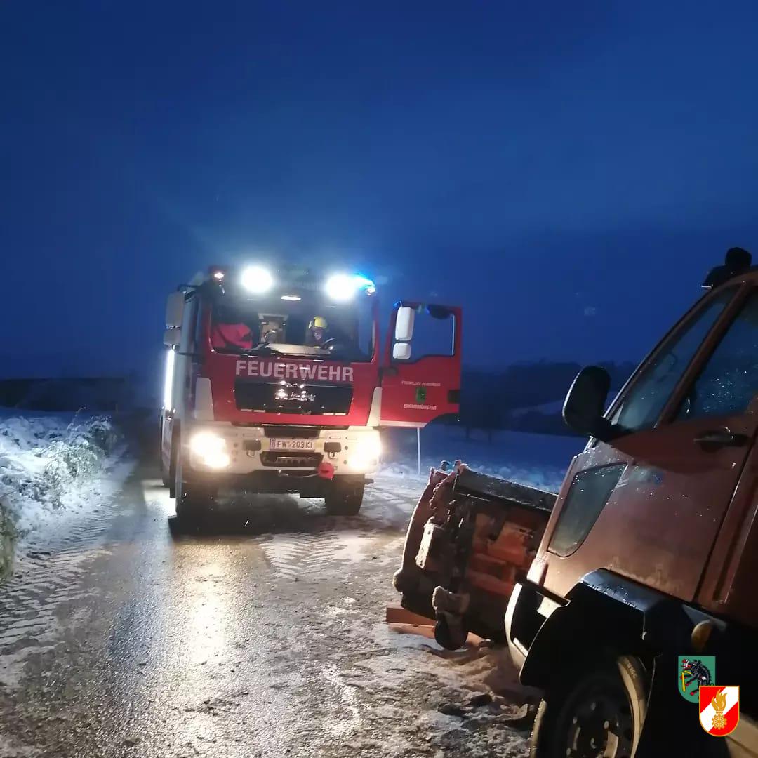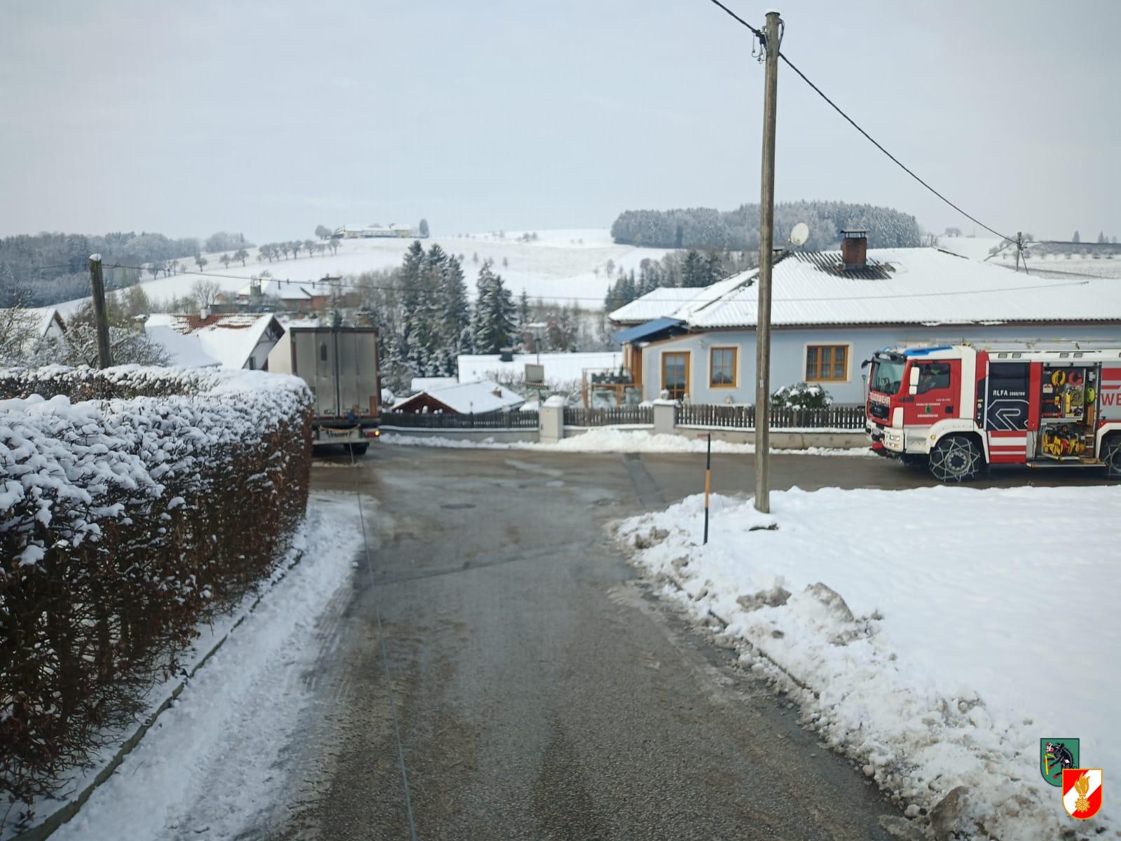 Am 19.12.2022 wurde die Feuerwehr Kremsmünster zu einer LKW-Bergung am Strasserbauerberg alarmiert. Der Lenker des Sattelzugs wurde durch sein Navi irrgeleitet. Beim Versuch umzudrehen blieb er auf der schneeglatten Fahrbahn hängen. Mit Hilfe der Seilwinde am Löschfahrzeug konnte das Fahrzeug geborgen werden.