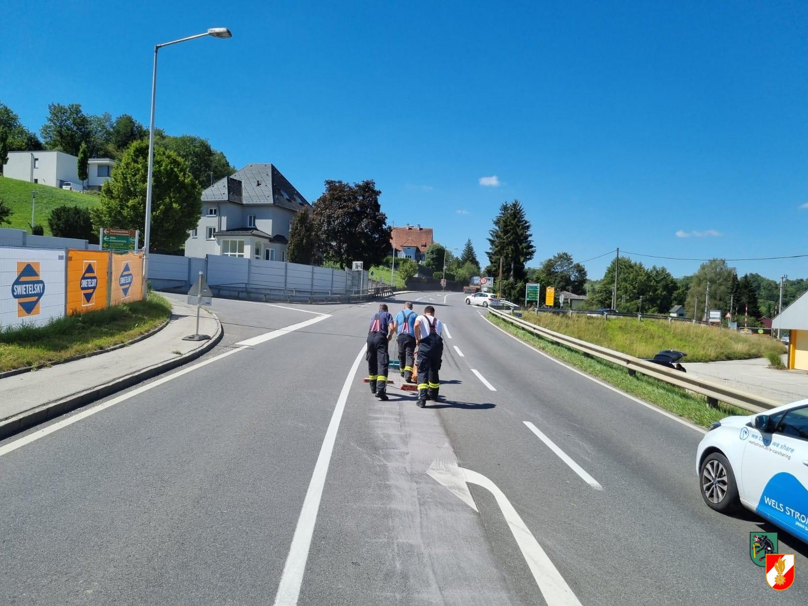Am 09.08.2022 wurden wir um 12:17 Uhr von der Straßenmeisterei Kremsmünster zu einer Ölspur auf der B122 alarmiert. Im Bereich oberhalb des Bahnhofes Kremsmünster verlor ein unbekanntes Fahrzeug Motoröl. Dieses wurde von uns gebunden und die Fahrbahn mit Ölspurtafeln abgesichert.